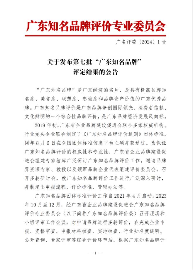 “廣東知名品牌”是廣東經(jīng)濟(jì)的名片,是具有極高品牌知名度、美譽(yù)度、聯(lián)想度、忠誠度和品牌資產(chǎn)價(jià)值的廣東優(yōu)秀品牌。廣東知名品牌評(píng)價(jià)是廣東品牌爭創(chuàng)國際領(lǐng)先、消費(fèi)者信賴、文化鮮明的一個(gè)綜合性品牌評(píng)價(jià),是廣東品牌經(jīng)濟(jì)發(fā)展風(fēng)向標(biāo)。